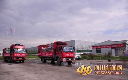 5月8日上午,两辆装载着5套应急快装房的大卡车从四川网投出发,发往雅安地震灾区,为灾区人民送去了“豫江人(河南-江油)”的一片深情厚谊。