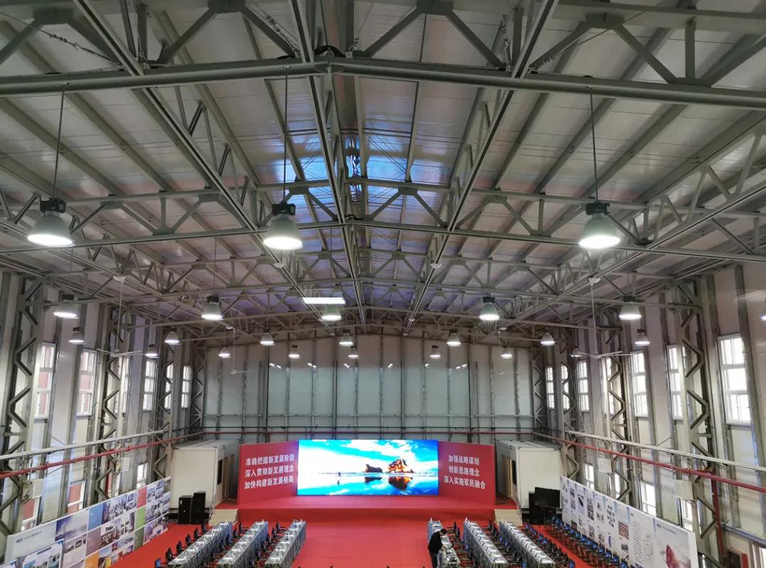 采用22米大跨度设计,满足内部大空间应用需求;根据舞台、操场、办公区等内部功能需求合理分布设计柱距,室内净高9m,除满足日常训练外,还可开展文体娱乐活动。