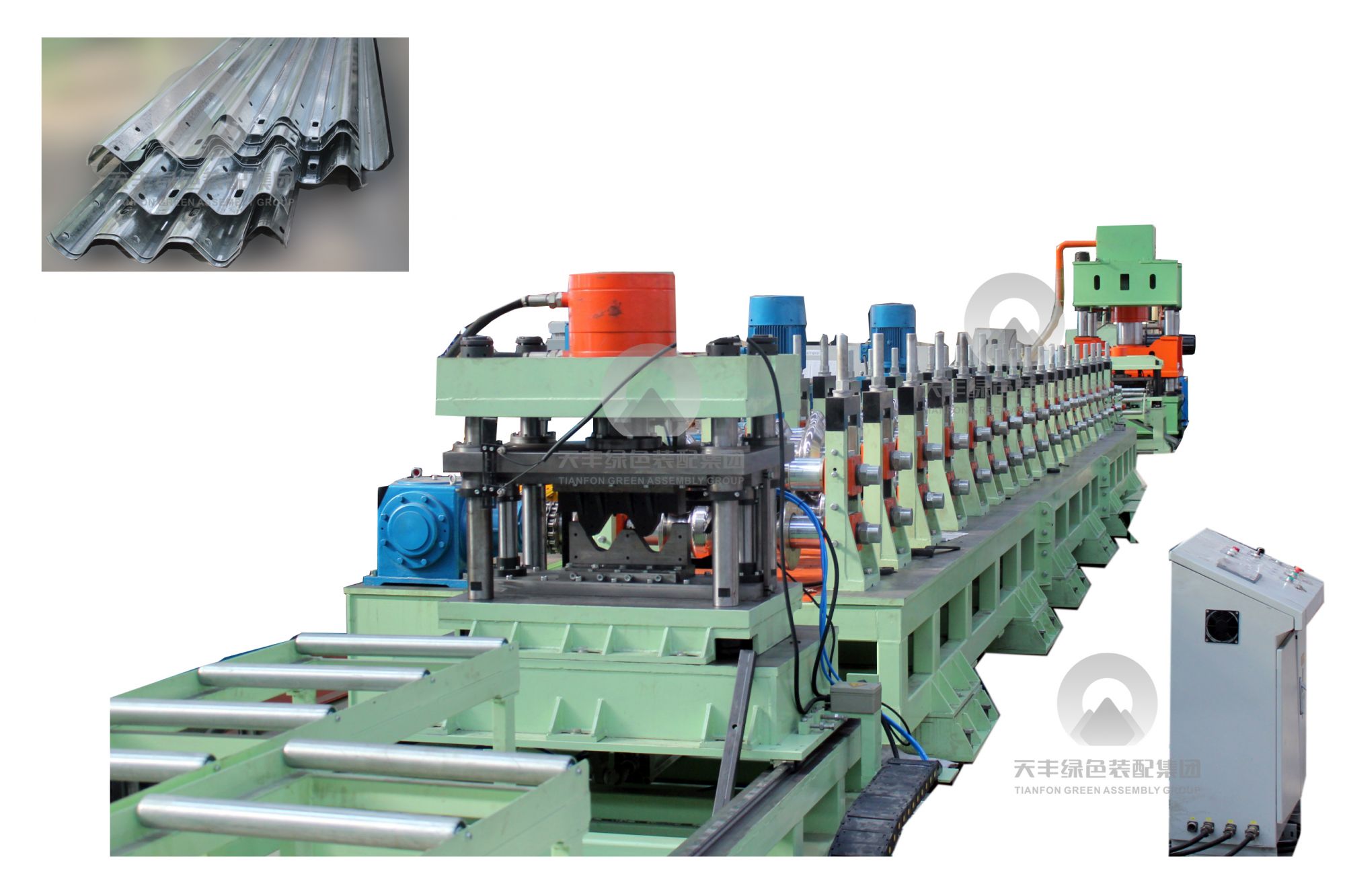TF高速公路护栏板冷弯生产线,可以实现原单张多工序、不间断生产,集开卷、矫平、冲孔、成型、剪切于一体的连续式生产,使产品外型标准,冲孔一致安装便易。生产线生产速度高,在线冲孔连续成型生产,操作方便,使用人工少。